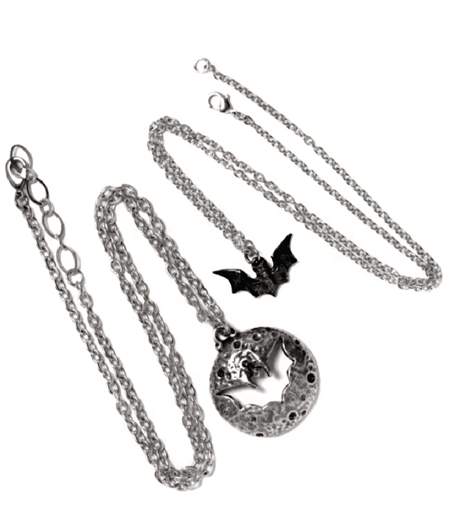 Луна: 35 х 31 х 7 мм. Летучая Мышь: 14 х 25 х 5 мм. Длина цепочек: 460 мм / 500 мм.