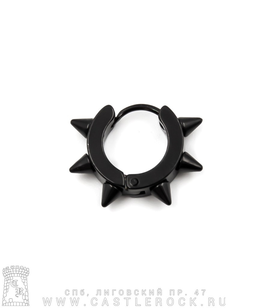 Серьга кликер Кольцо с Шипами (6 шипов, сечение прямоугольное, черная) 13 мм