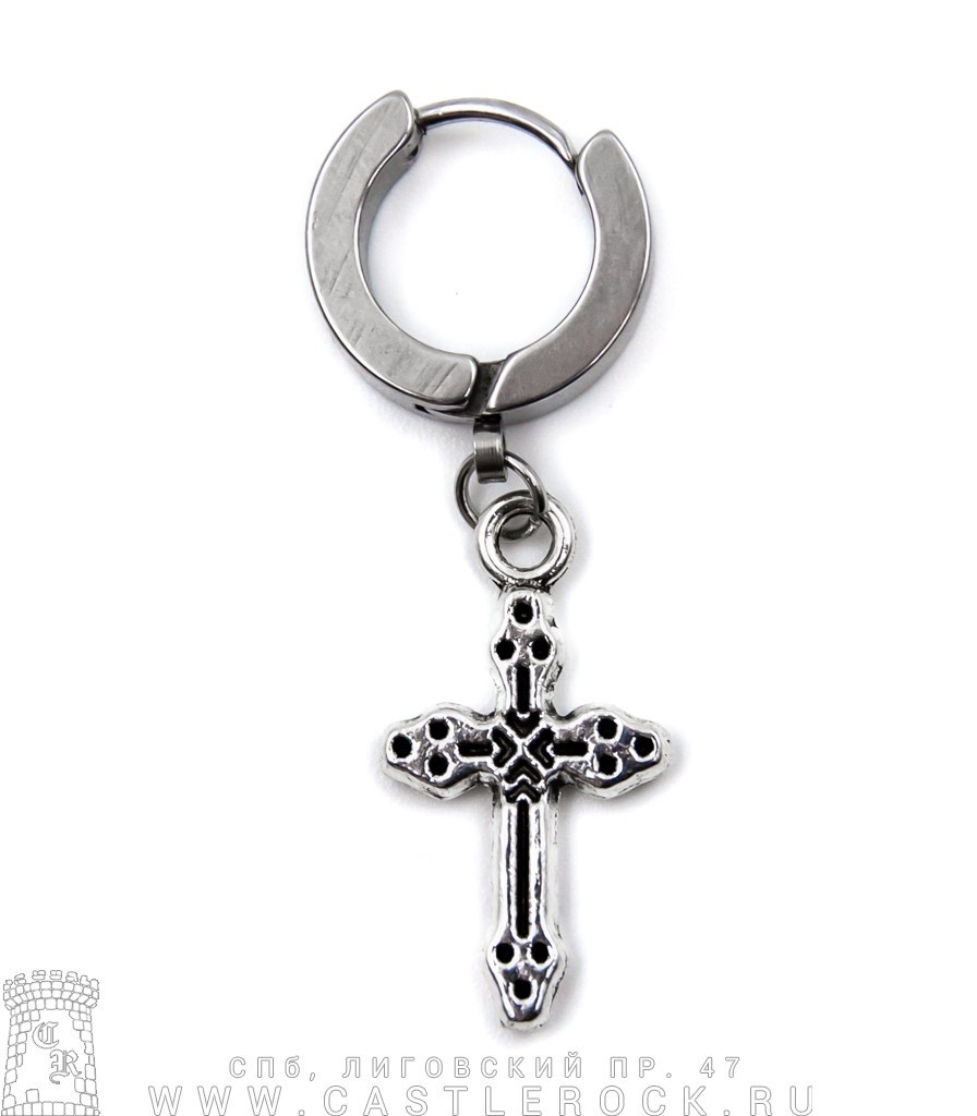 Серьга кликер с подвеской Крест Боттонни (узор, сечение прямоугольное) 13 мм
