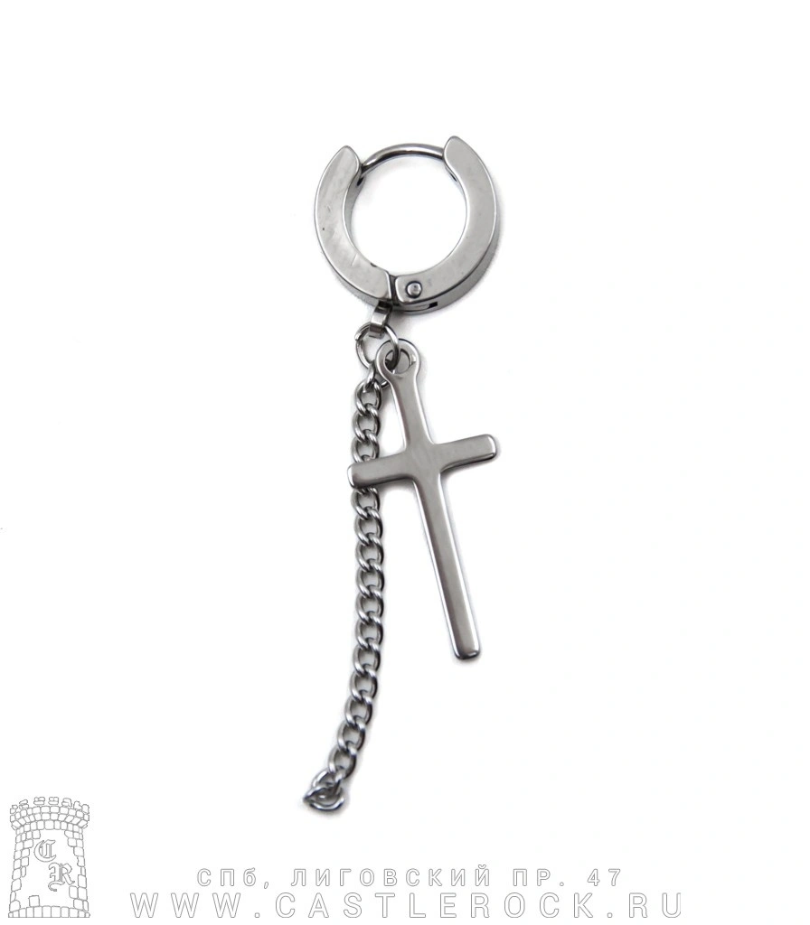 Серьга кликер с подвеской Крест и Цепь (сечение прямоугольное) 13 мм