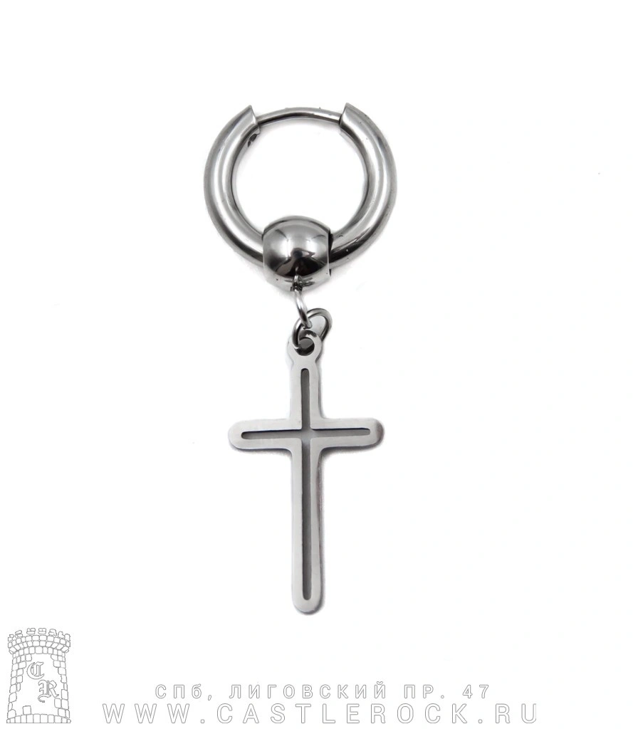 Серьга кликер с подвеской Крест (прорезанный, сечение круглое) 15 мм