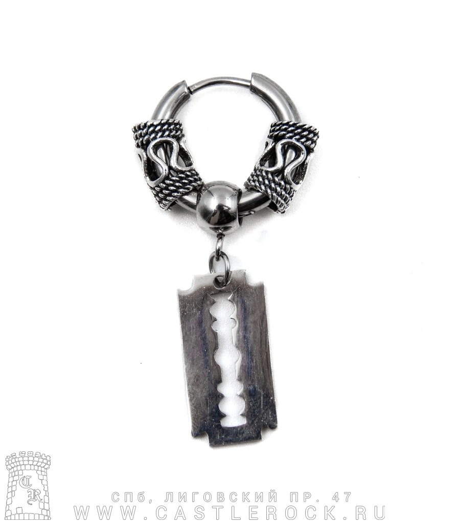 Серьга кликер с подвеской Лезвие и Бусины (сечение круглое) 17 мм