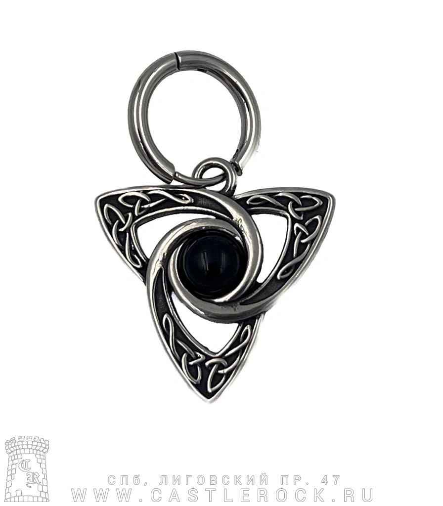 Серьга кликер с подвеской Трикветр (камень черный, сечение круглое) 14 мм