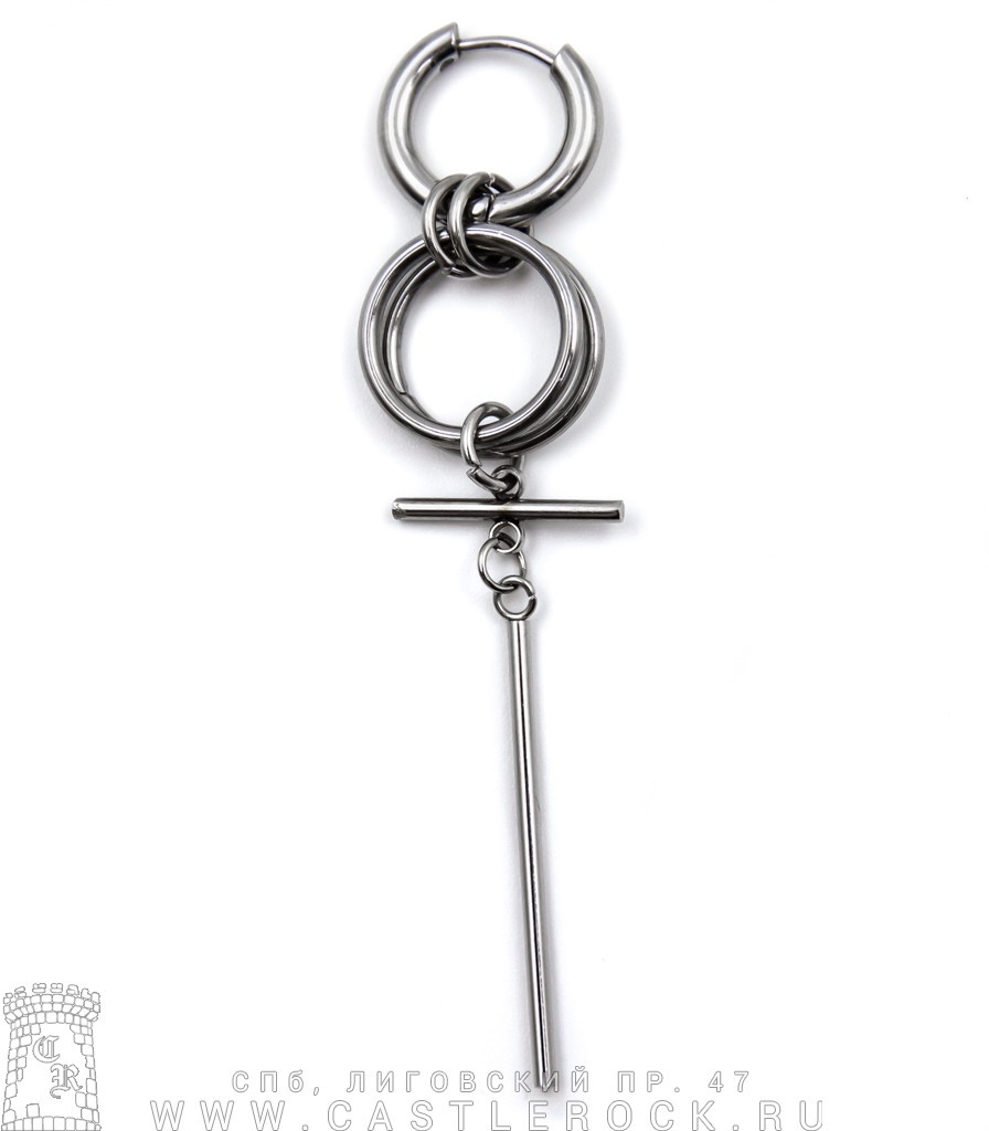 Серьга кликер с подвеской Цилиндр и Перекладина на Кольцах (сечение круглое) 15 мм