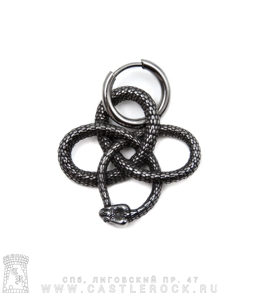Серьга кликер с подвеской Уроборос Кельтский Узел (змея, сечение круглое) 14 мм