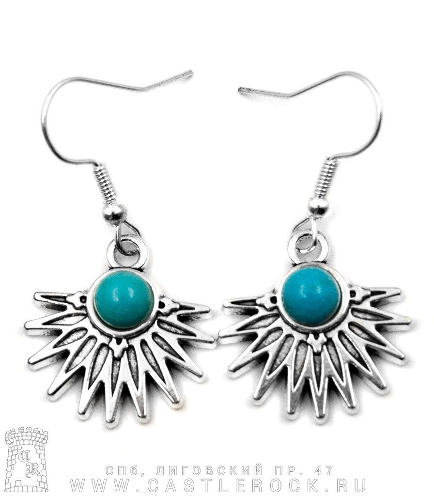 Серьги Кабошон Круг в Лучах (вставка голубая каулит)
