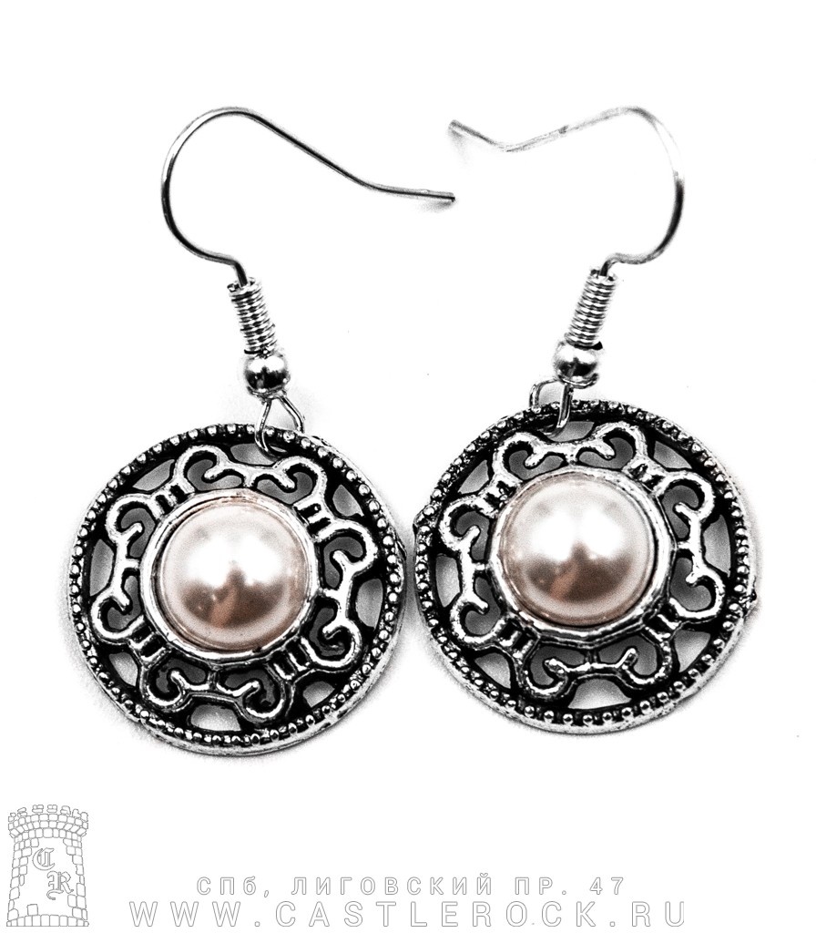 Серьги Кабошон Круг (вставка белая)