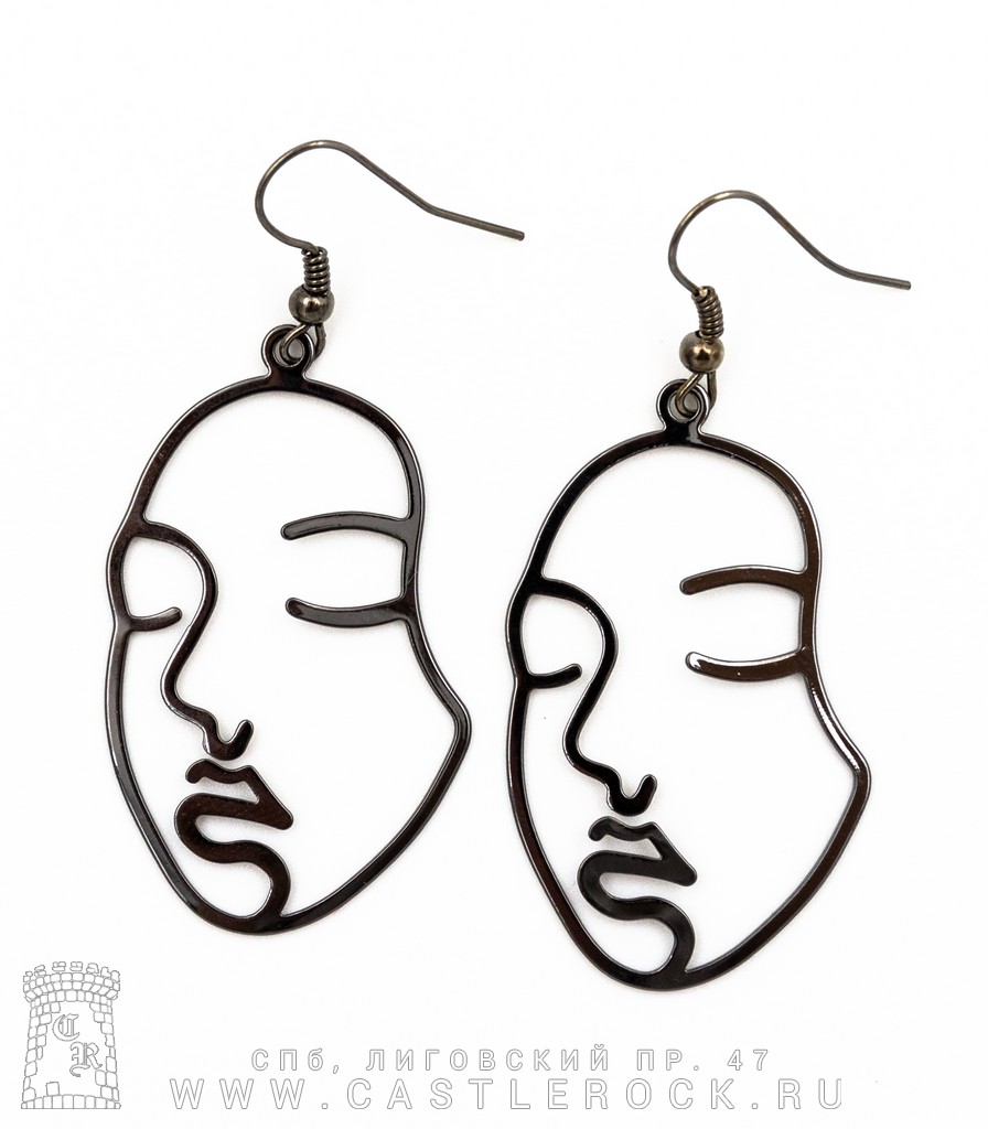 Серьги Лицо Девушки (большие, черные)