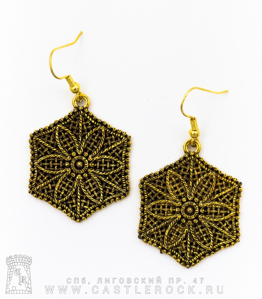 Серьги Цветок Бохо (шестиугольник, бронзовые)