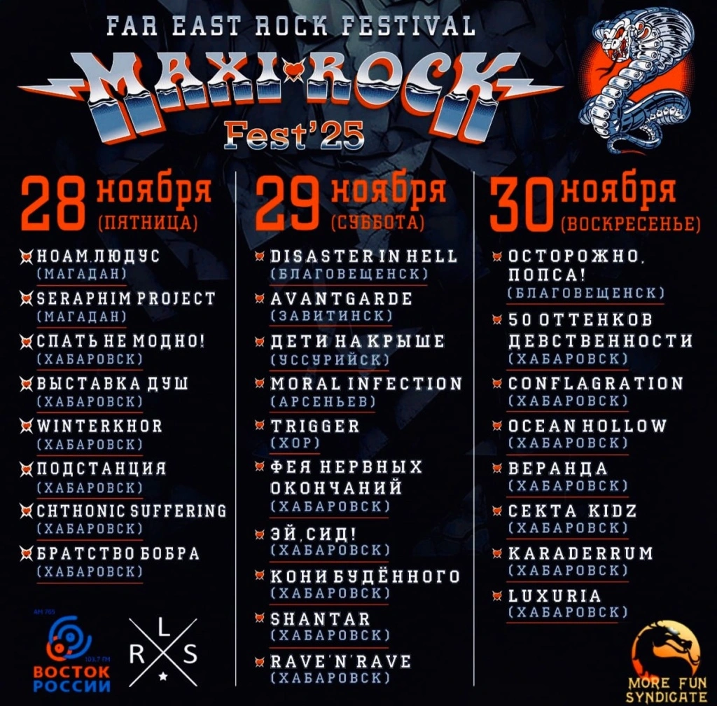 Рок-фестиваль "Maxi-Rock" проходит в Хабаровске с 28 по 30 ноября. Участие принимают в основном местные команды, но не только. Группы съехались со всего Дальнего Востока. Они представляют самые различные музыкальные направления: от блэк-метала и хардкора до поп-панка и пост-рока.