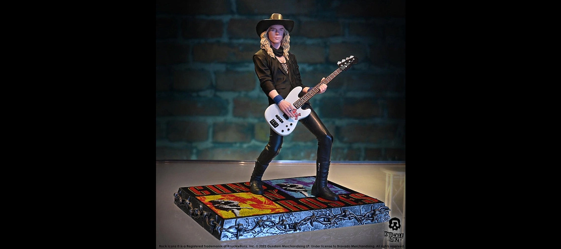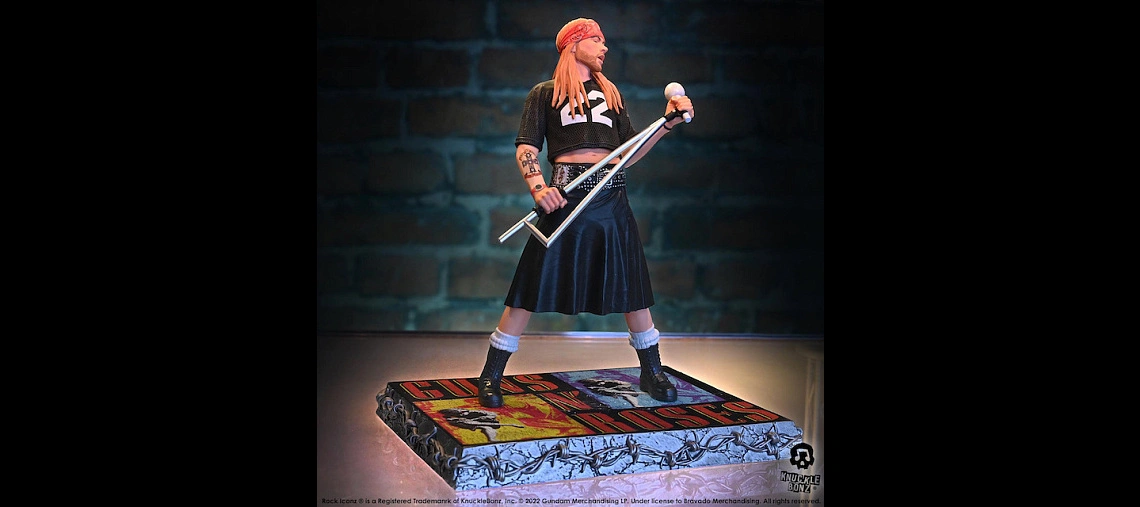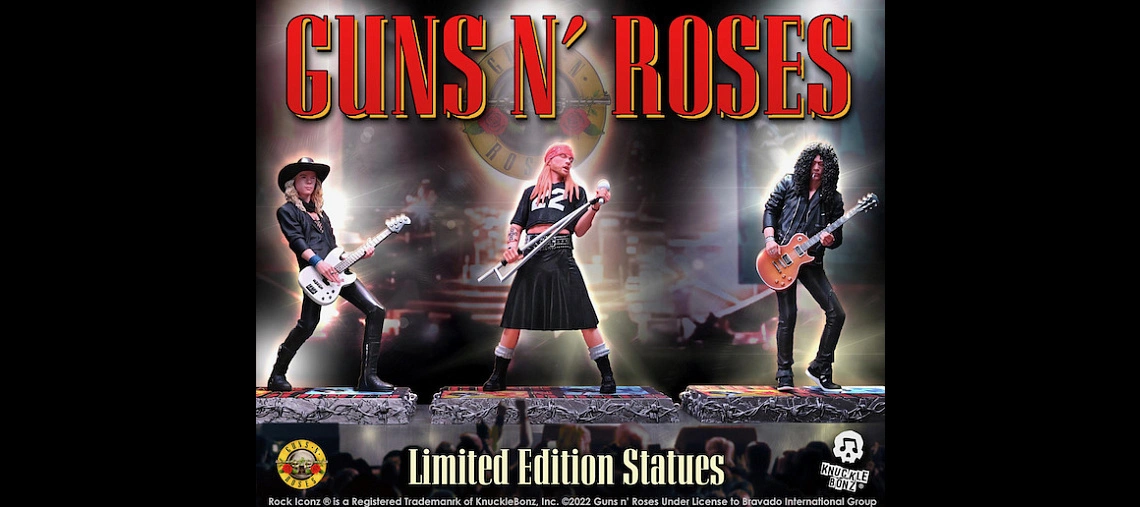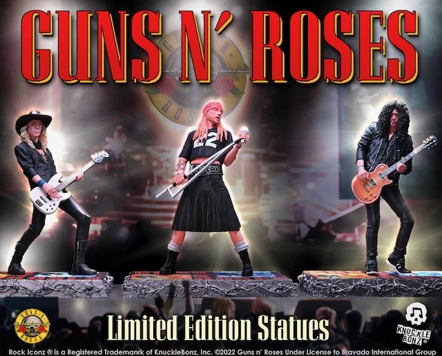 Для любителей артефактов: новое поступление в вашу коллекцию фигурок рок-музыкантов. Трое участников Guns N 'Roses – Эксл Роуз, Слэш и Дафф МакКаган станут отличным украшением вашей каминной полки или зеркального шкафа (не знаю, где вы их храните).