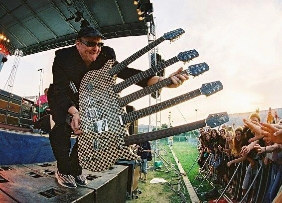 На этой фотографии ему намного меньше, но это самый известный снимок Рика, где он демонстрирует свою гитару с пятью грифами.