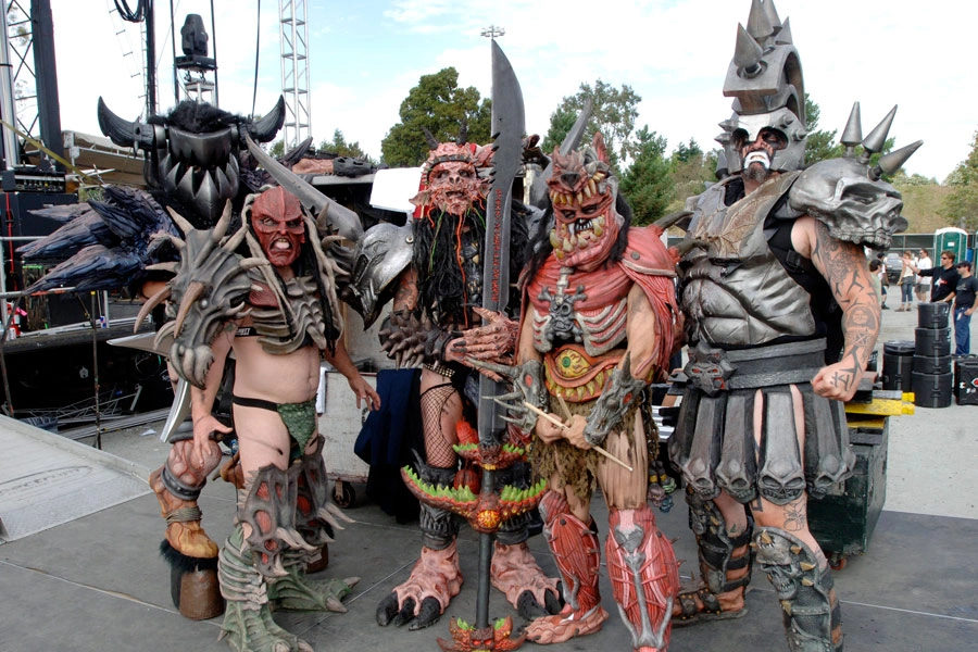 На первом месте сегодня у нас будет Gwar. О, это крутые ребята! Жестокие и ужасные инопланетные захватчики, прибывшие к нам из далекой чужой галактики, а точнее – из Ричмонда, штат Вирджиния. Группа образована в 1984, и с той поры пролила целые реки “крови” и “расчленила” на сцене не одного продажного политика и прочих знаменитостей, включая чучело своего прямого конкурента Мистера Лорди. Музыканты не раз говорили, что Gwar никак не расшифровывается, что это сокращение от их изначального названия Gwaaarrrgghhlllgh, но несмотря на это, неутомимые фаны продолжают искать в нем скрытый смысл. Одно из самых популярных толкований – "God what an awful racket", то есть “Боже, что за ужасный шум”, но это всего лишь миф. Но вот что интересно: на польском языке слово gwar как раз и означает шум, гвалт.
